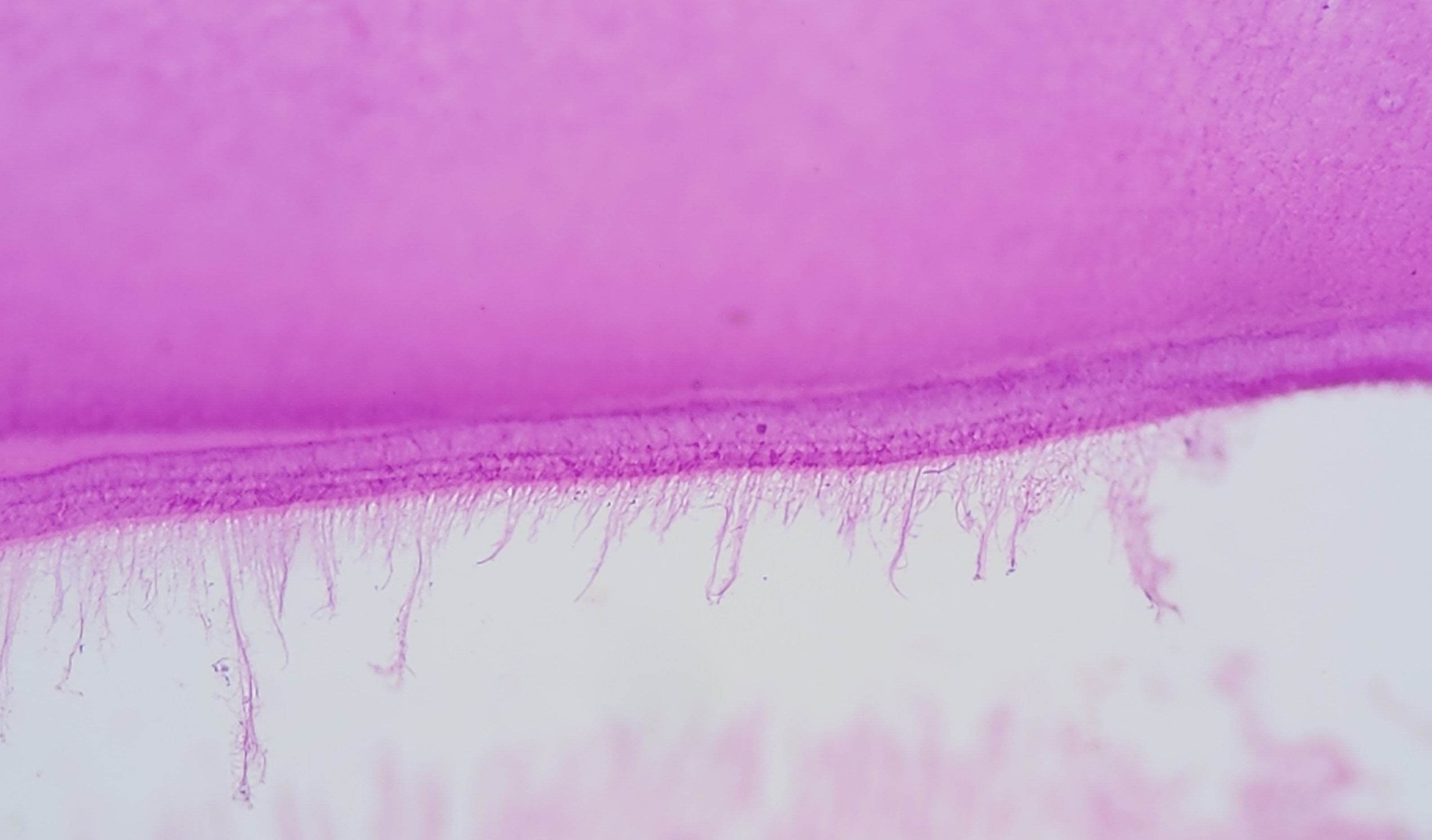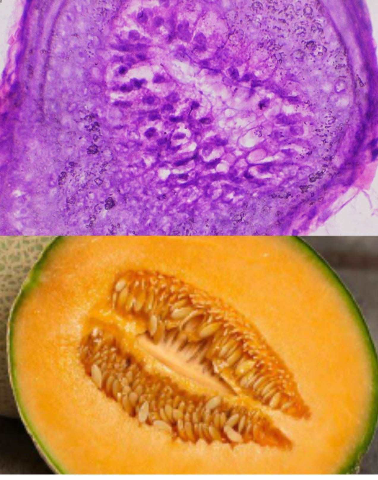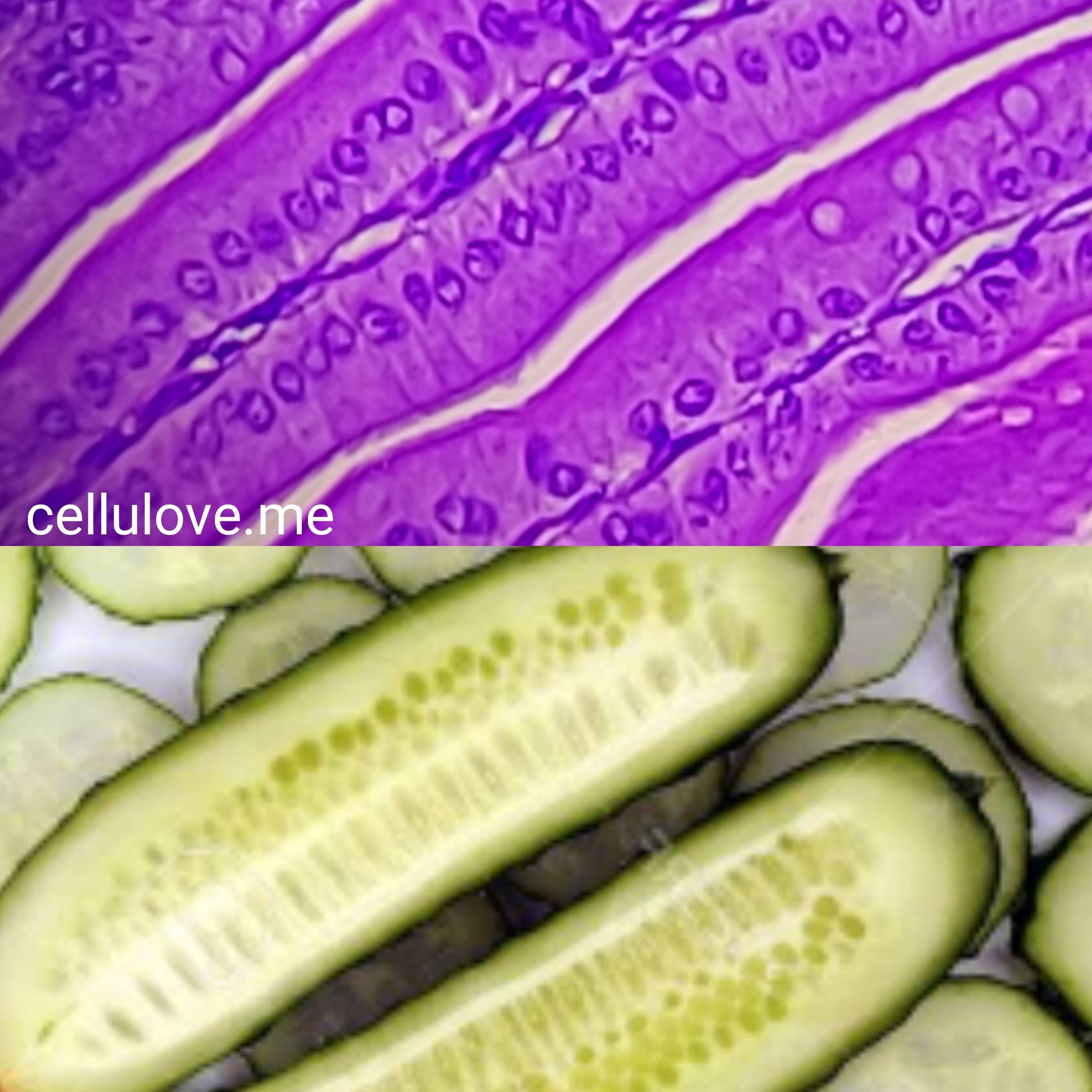 Cucumber Villi by Dalia Ahmed Yousef Yehia, Lecturer of Medical Histology and Cell Biology, Faculty of Medicine at Ain Shams University, Cairo, Egypt. Duodenum Villi x400 H&E slide. What a resemblance between the cucumber and intestinal villi – even the seeds look like the columnar epithelium nuclei and goblet cells.