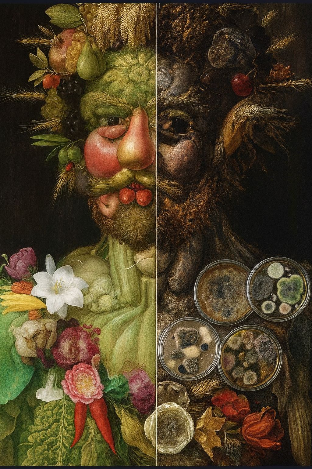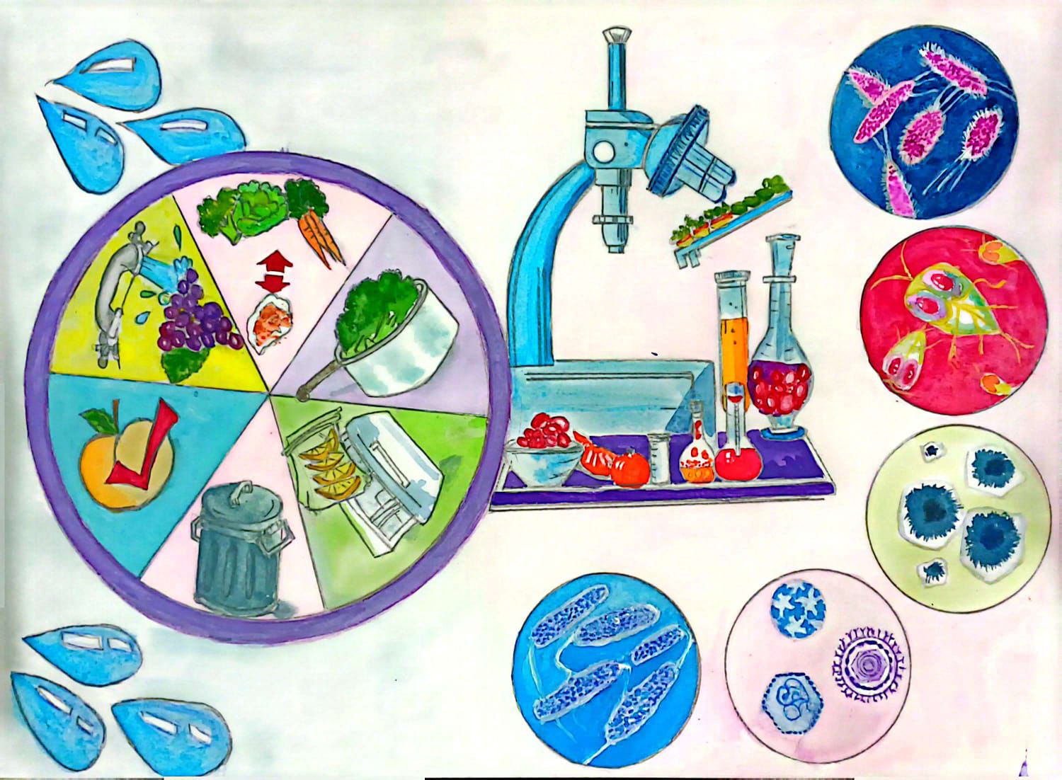 Food’s Hidden Duality: Safety and Microbial Threats by Claudia Rotondo, Rome, Italy. This artwork reimagines Arcimboldo’s style in two contrasting halves, highlighting the fragile boundary between safety and contamination – a core principle of food microbiology. Inspired by daily laboratory work, it reflects how the unseen microbial world continually challenges food safety.