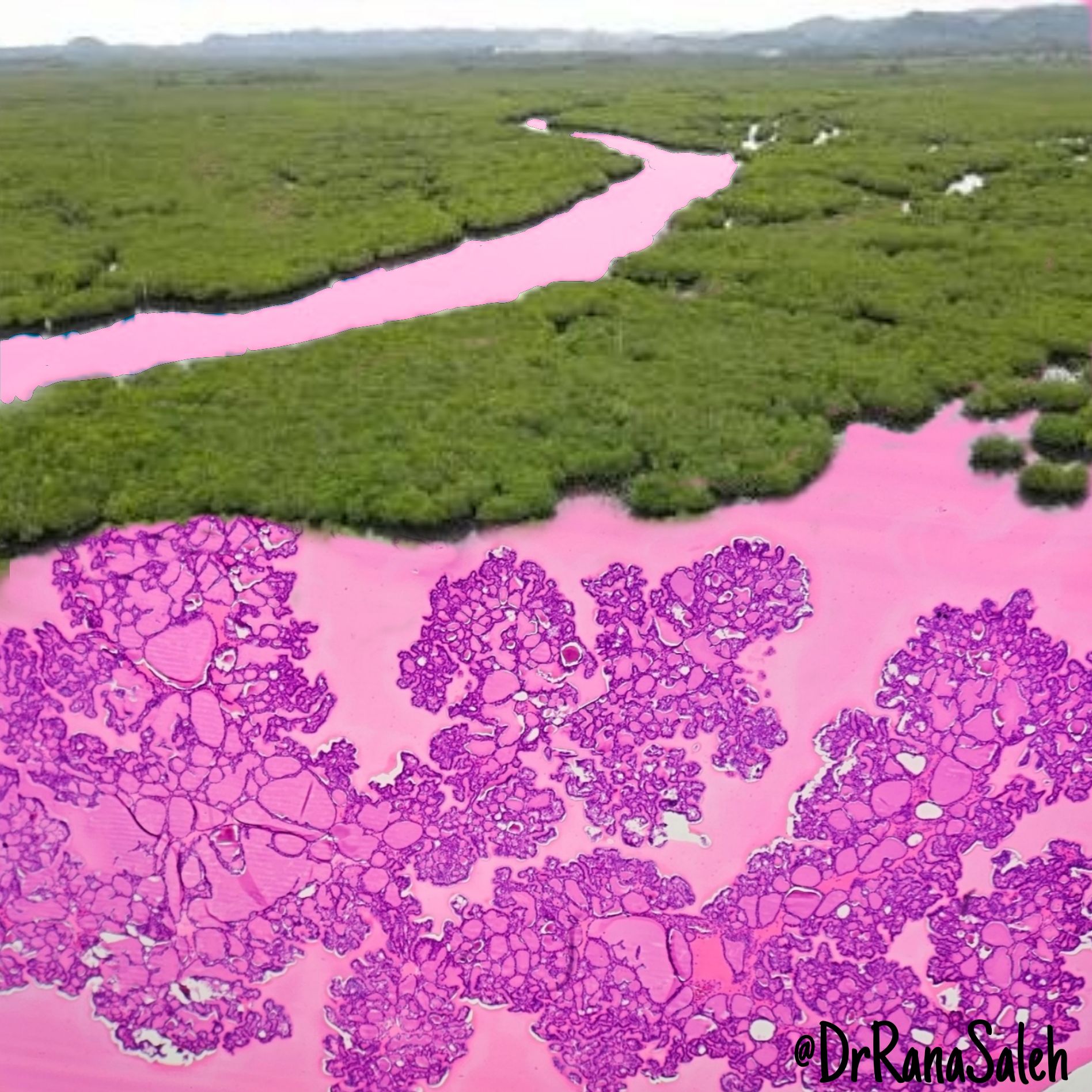 Pinkish Mangrove Forest by Rana Saleh, FRCpath, American Hospital Dubai, UAE. Colloid rich benign thyroid nodule.