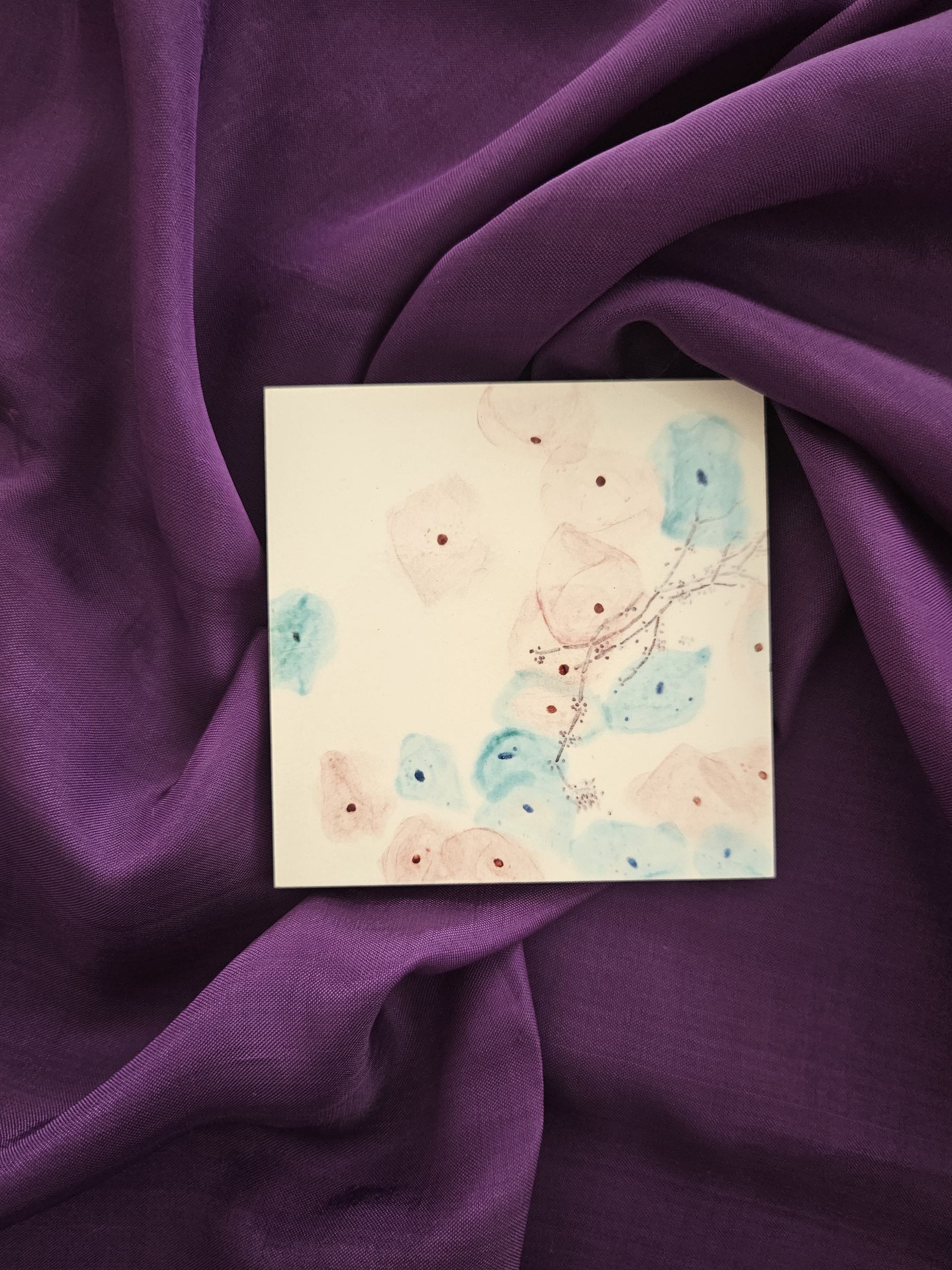 Cervical pap smear with Candida infection by Selim Surer, PGY-1 pathology resident at Malatya Inonu University, Turkey. I combine visually aesthetic histopathological images I come across during my training with traditional handmade tilework; to my knowledge, it could be a world first. It is a way to express my love for pathology and keep in touch with my heritage.
