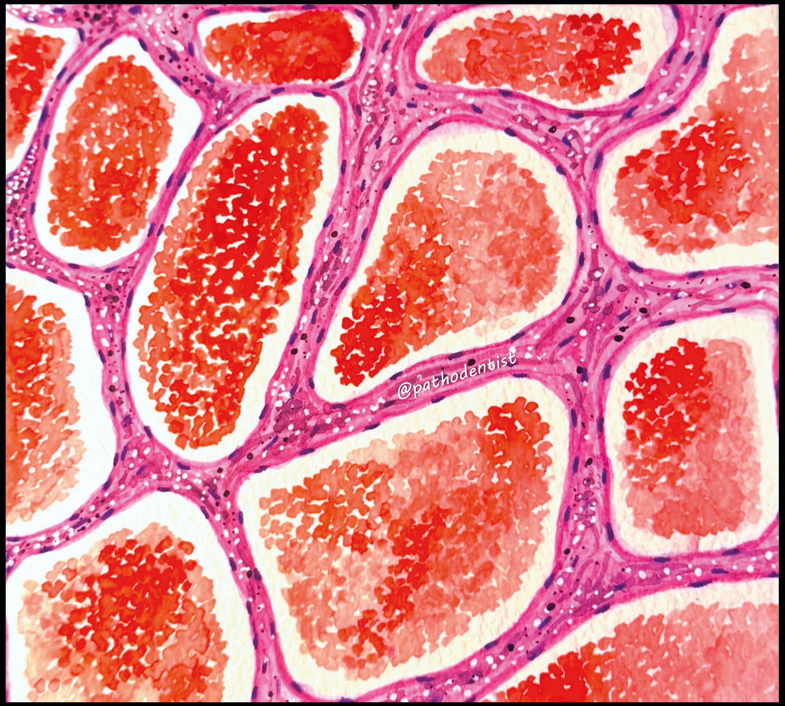 Vascular pathology by Pranjali Mandurkar, Oral and Maxillofacial Pathologist, Goa Dental College and Hospital, India. A watercolour painting depicting a vascular lesion.