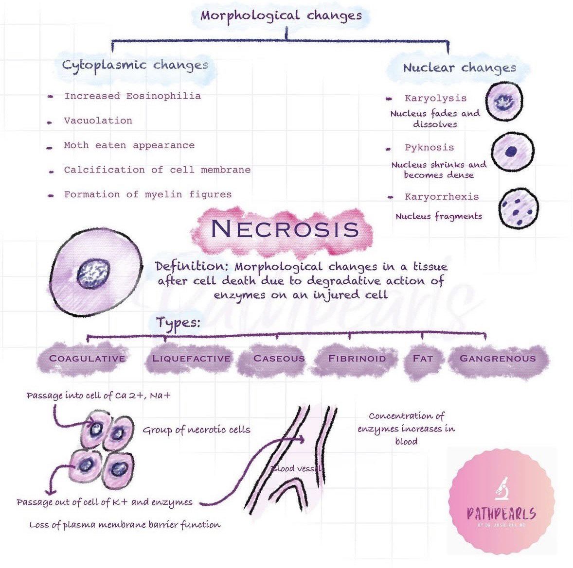 Necrosis by Akshi Raj, MD pathology, Assistant Professor at DR. DY Patil Medical College, Hospital and Research Center, Pune Maharashtra, India. A collection of illustrations showing various forms of necrosis.