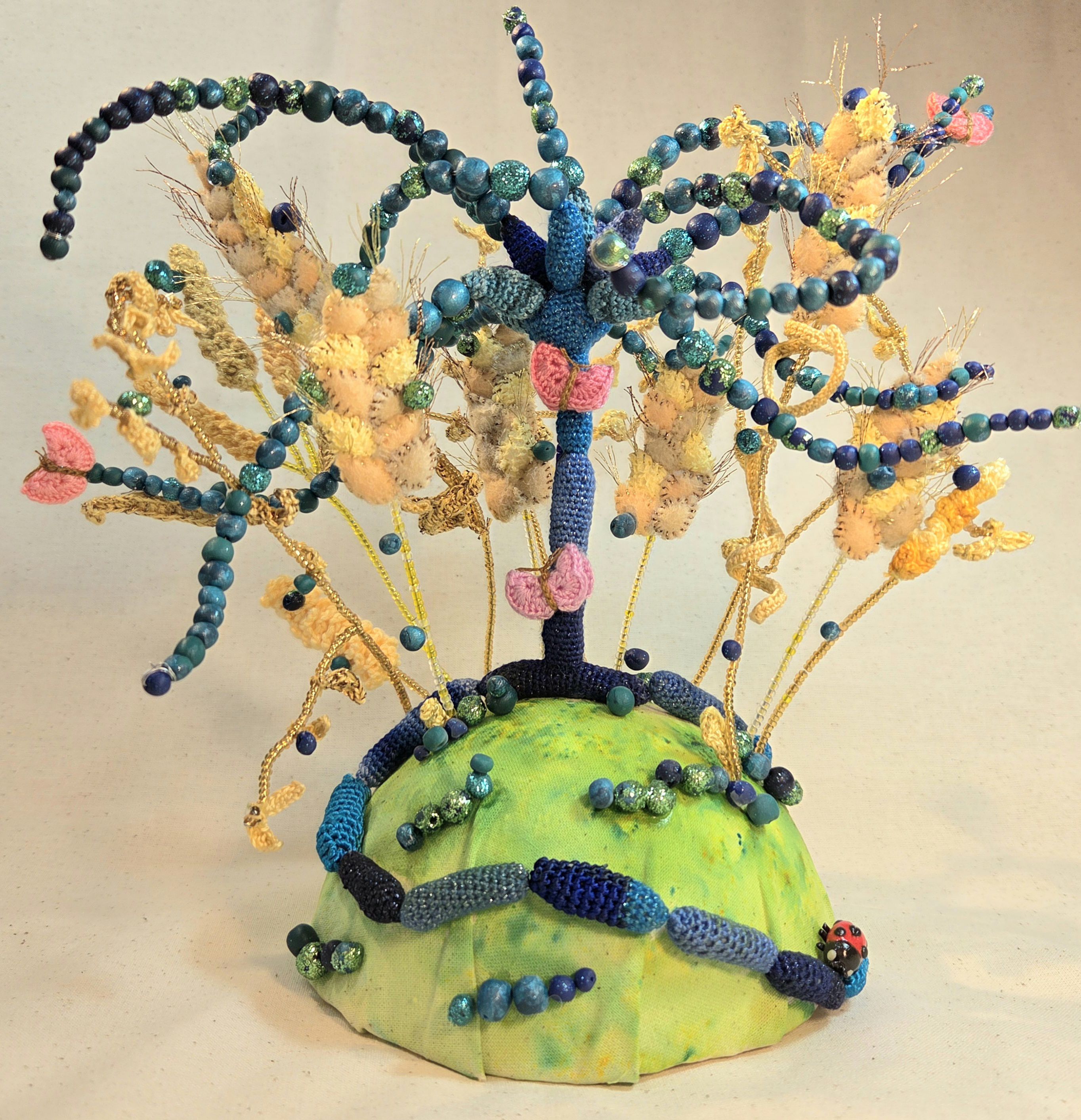 Deadly Harvest by Katherine Watson, Microbiology Consultant,South Tyneside and Sunderland NHS Foundation Trust, Newcastle Upon Tyne, UK. This sculpture, made from crochet and modelling clay, highlights rising antifungal resistance in Aspergillus strains linked to widespread azole fungicide use in agriculture. A 2025 report from five EU health and environmental agencies calls for cross-sector collaboration to address this growing public health threat.