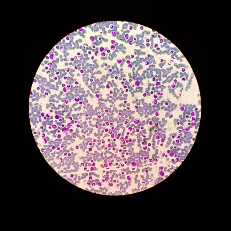 Never goes unnoticed (CML) by Muhammad Zunoorain Ali, Allama Iqbal medical college Lahore, Pakistan. Photographs of blood cells captured in a unique way, highlighting their patterns, structure, and the differences between normal and abnormal blood cells at the microscopic level.