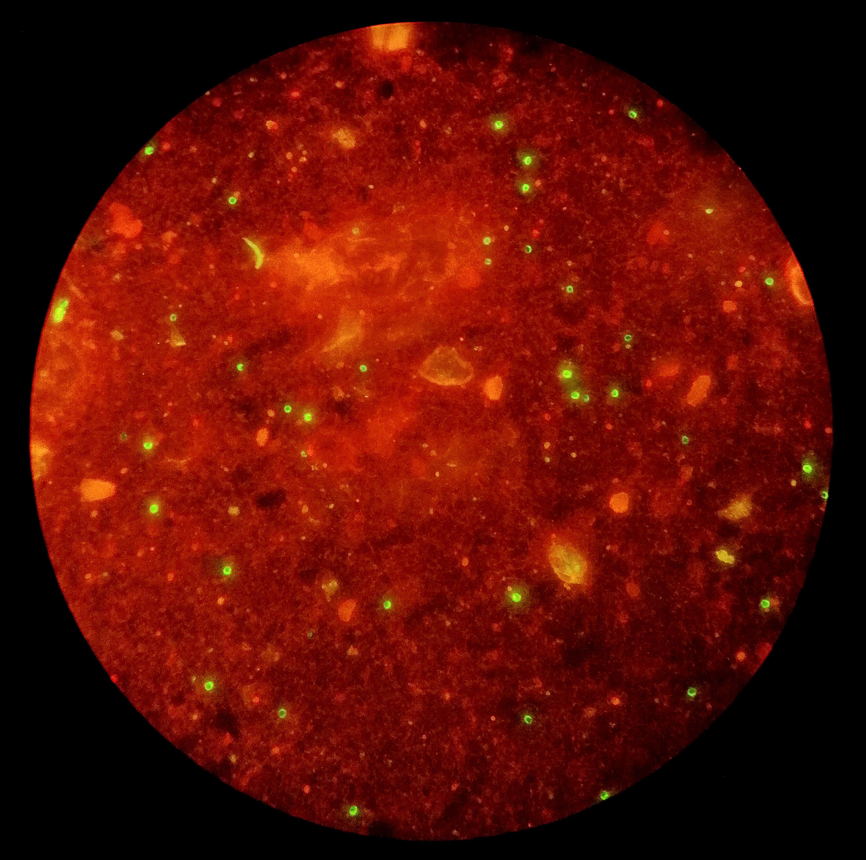 A Fluorescent Warning by Laura Cabrera Martín, Third Year Medical Resident in Microbiology and Parasitology, Hospital Universitario Nuestra Señora de Candelaria, Santa Cruz Tenerife, Spain. Under fluorescence microscopy, Cryptosporidium oocysts appear as bright green signals after auramine staining. Invisible to the naked eye, these food- and waterborne parasites remain a persistent threat to food safety and public health.
