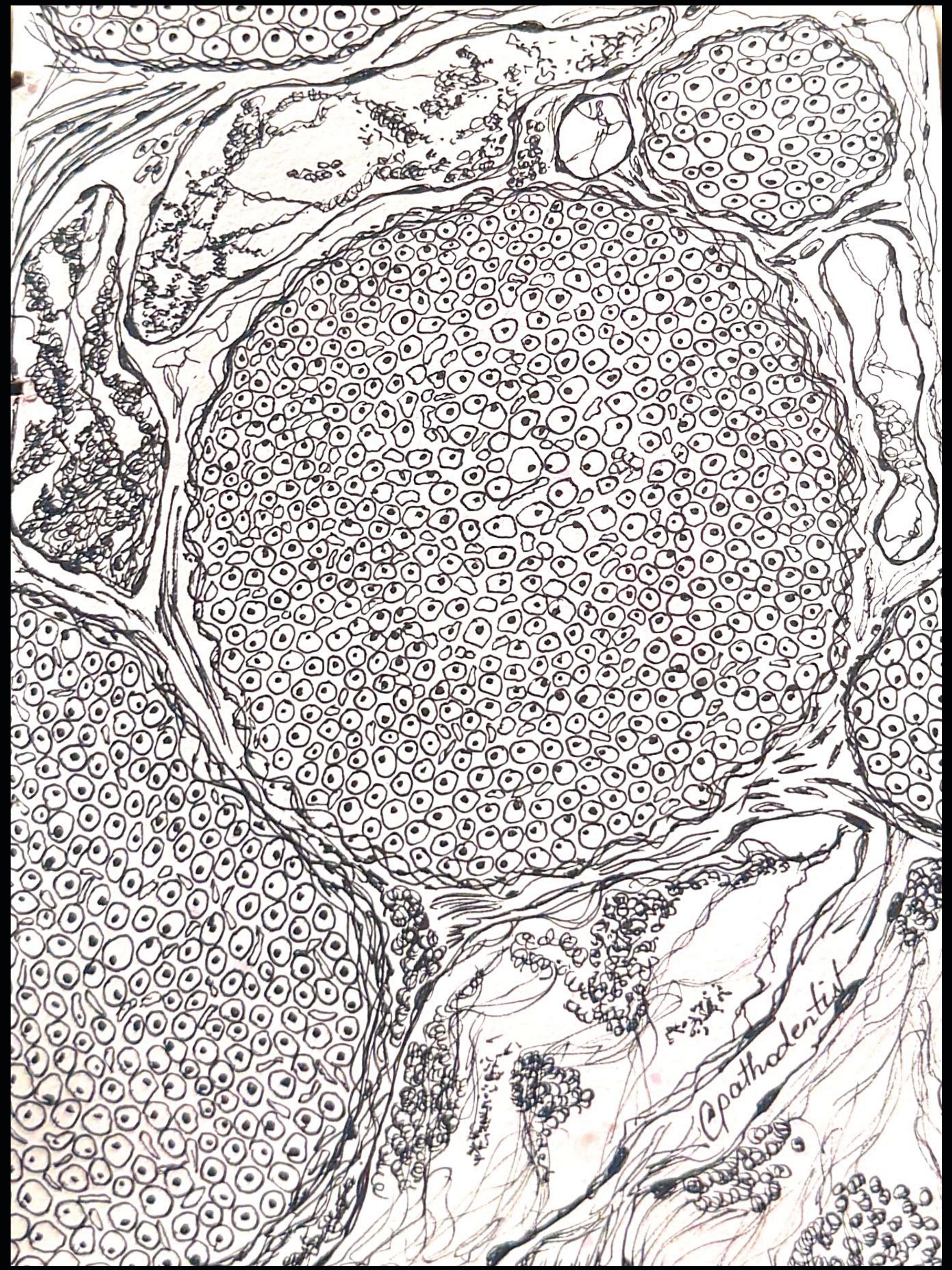 Peripheral nerve by Pranjali Mandurkar, Oral and Maxillofacial Pathologist, Goa Dental College and Hospital, India. A monochromatic sketch of a cross-section of peripheral nerve using micro pigment ink.