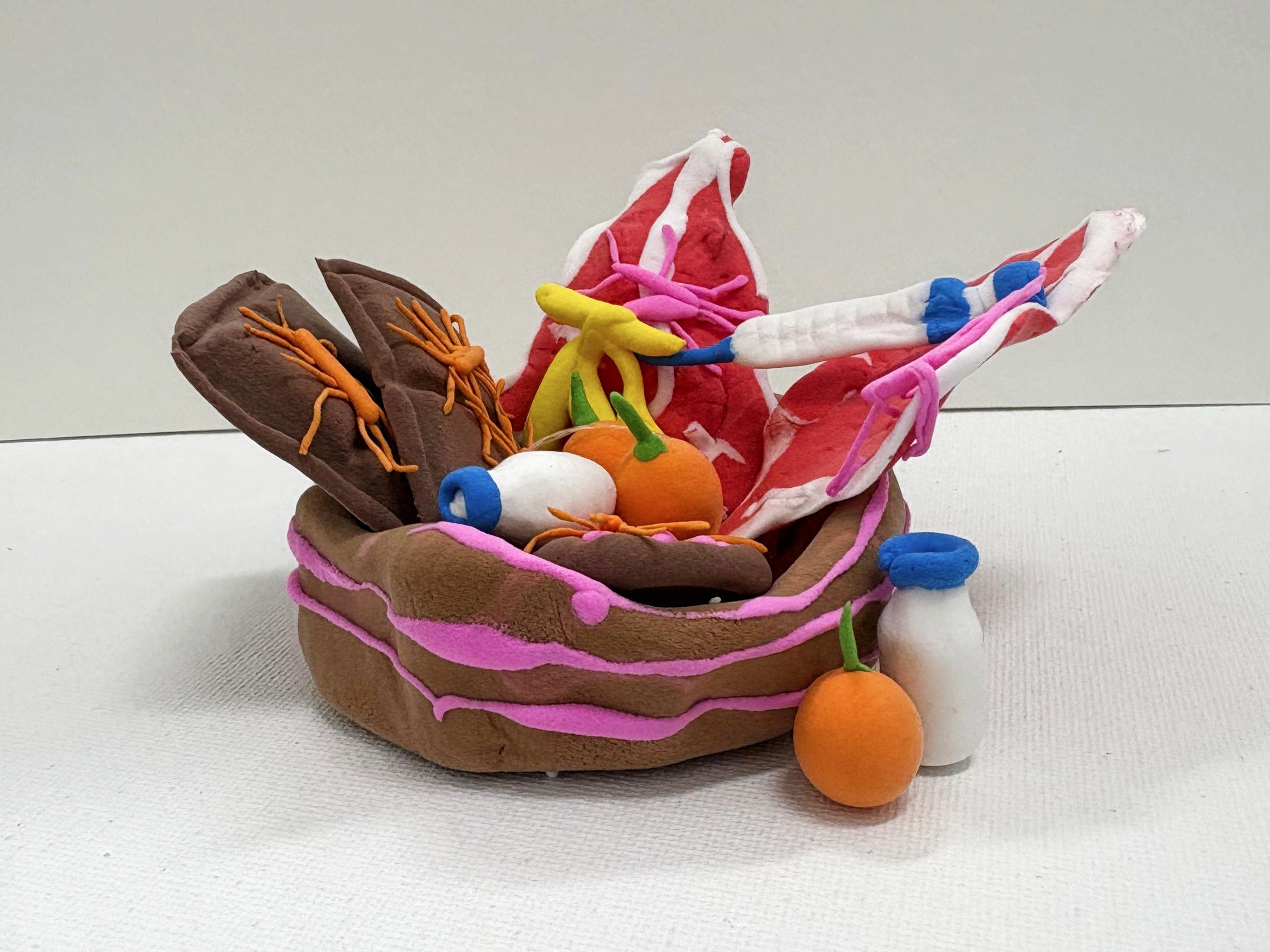 They’re Everywhere by Shelley Peterson, A/Head STI Unit, National Microbiology Laboratory, Public Health Agency of Canada, Winnipeg, Canada. They’re Everywhere is a mixed-media sculpture with whimsical watercolor elements that highlight the ubiquity of bacteria, particularly foodborne pathogens, in our world and the food we eat. The organisms’ menacing expressions contrast with the innocence of a bowl of noodles, underscoring hidden threats in everyday meals.
