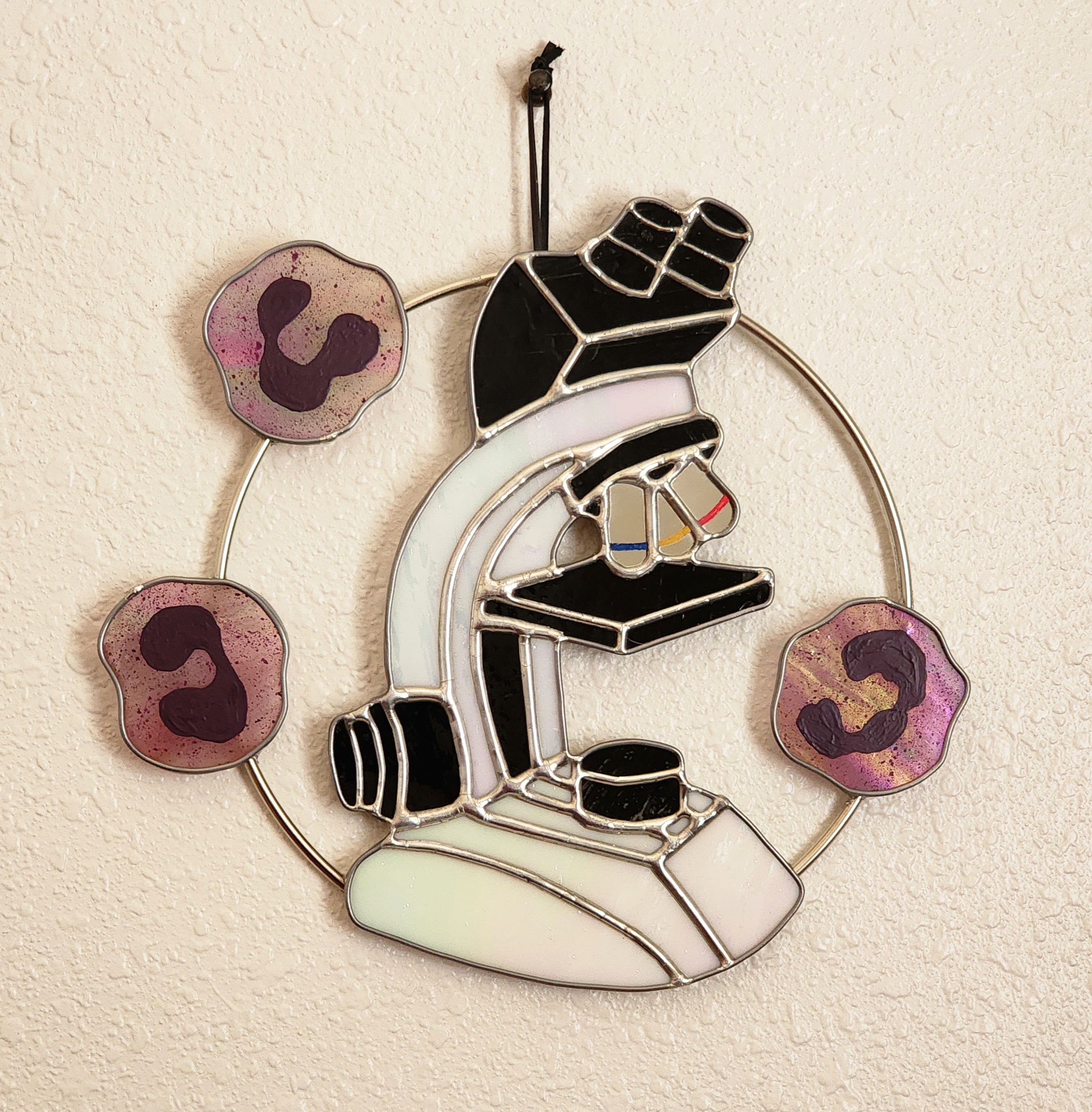 Pushing [Stained] Glass by Emily Eischen Martin, fourth-year medical student at Rocky Vista University, Ivins, Utah, USA. Outside of the lab, one of my hobbies is creating stained glass art, including this iridescent stained glass microscope.