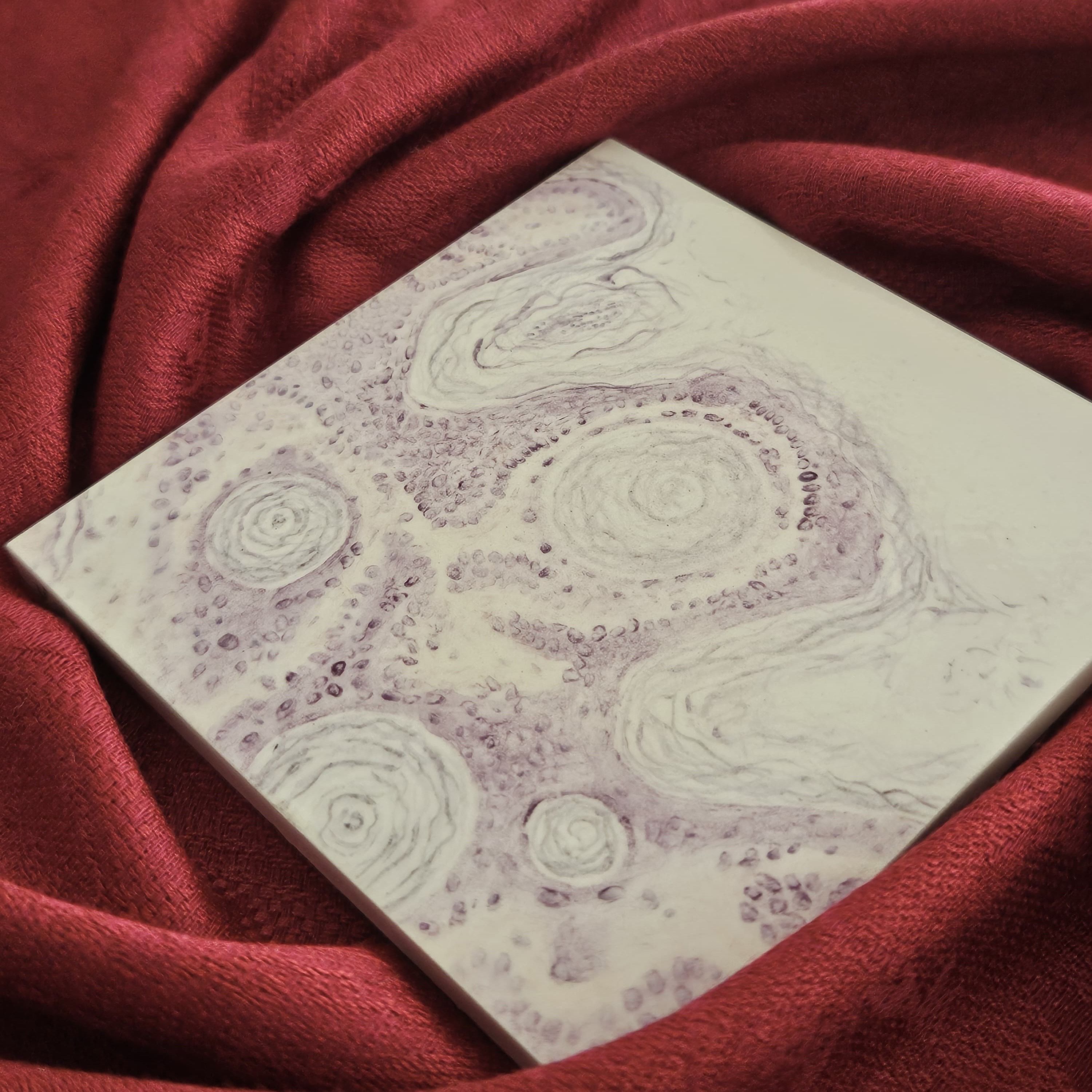 Seborrheic keratosis by Selim Surer, PGY-1 pathology resident at Malatya Inonu University, Turkey. I combine visually aesthetic histopathological images I come across during my training with traditional handmade tilework; to my knowledge, it could be a world first. It is a way to express my love for pathology and keep in touch with my heritage.