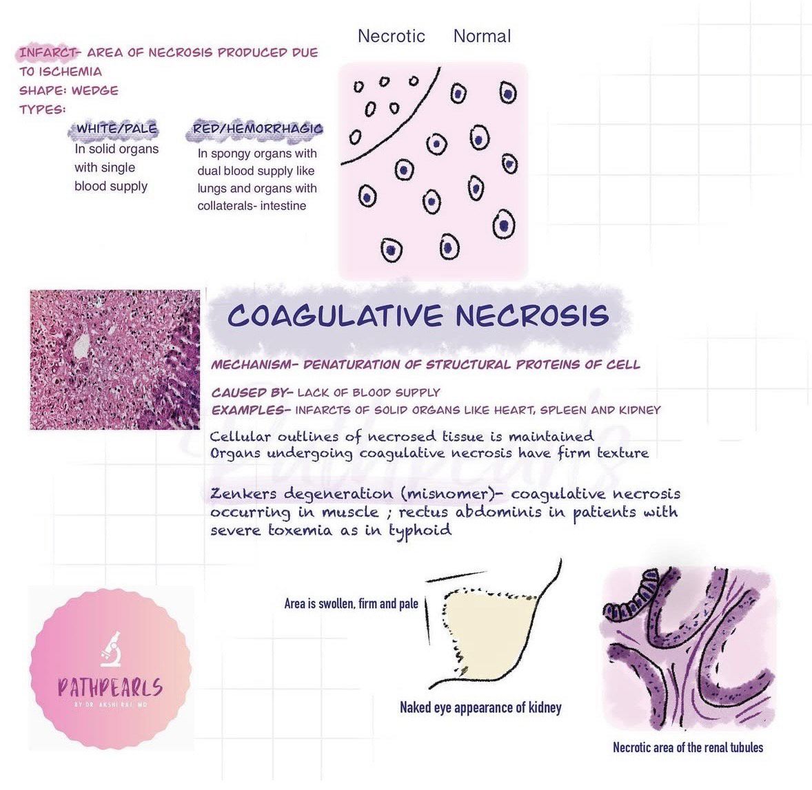 Coagulative Necrosis by Akshi Raj, MD pathology, Assistant Professor at DR. DY Patil Medical College, Hospital and Research Center, Pune Maharashtra, India. A collection of illustrations showing various forms of necrosis.